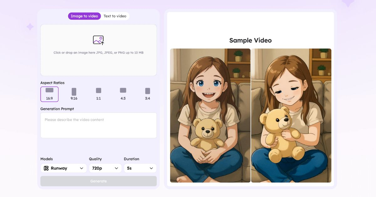 The generated videos contain no watermark, so you can use them directly in social media posts or your portfolios.